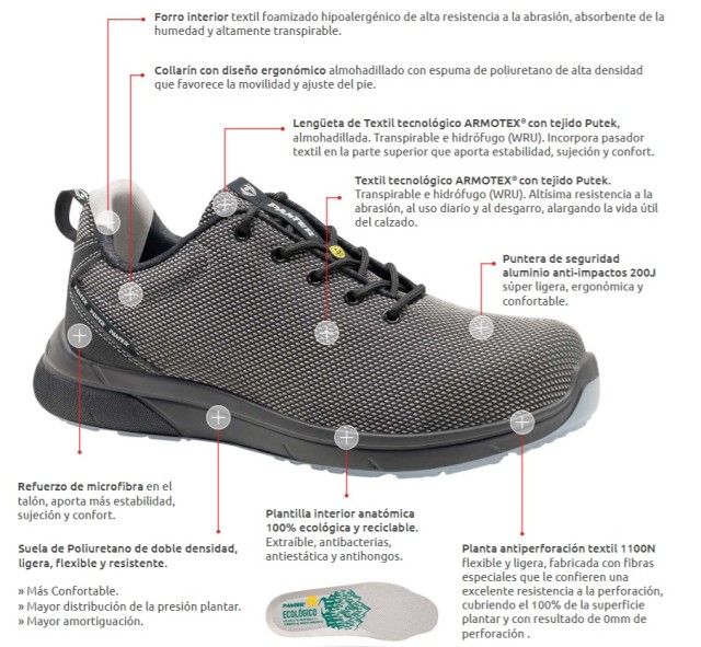 S3 ESD FORZA SPORTY NEGRO APTO PARA TRABAJOS EN AMBIENTES DE CALOR Y HUMEDAD TALLA 41 (disponibles tambien en azul y rojo con talla 37 a 47, consulte en su ferreteria habitual)
